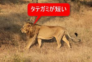 アフリカライオンに比べてタテガミが短い。
