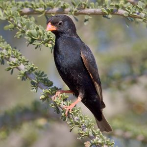 Village indigobird、Steelblue widowfinch、Combassou finch