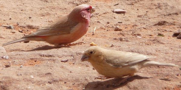 サバクマシコのオス(上)とメス(下)