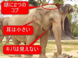 アジアゾウ :アフリカゾウよりは小さい。